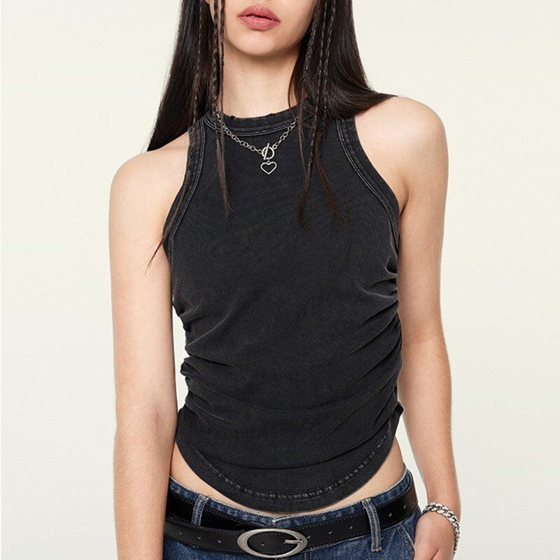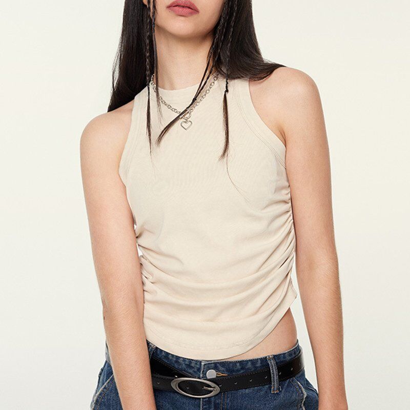 This stylish sleeveless ribbed tank top is perfect for casual wear. Made from soft, breathable fabric, it features a high neckline and a fitted silhouette, offering both comfort and a flattering look.